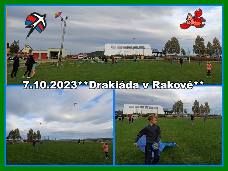 Náš oddíl Rakováček ve spolupráci se Sborem dobrovolných hasičů Raková uspořádal 7.10.2023 již 6. ročník Drakiády v Rakové. Počasí vyšlo skvělé, vítr foukal hodně, a tak nebyl žádný drak, který by nelítal. V hasičárně si všichni mohli zakoupit drobné občerstvení a posedět. Pro děti byl připravený dětský koutek a malé odměny. Odpoledne jsme rozdělali oheň, kde si každý mohl opéct donesené dobroty. Akce se vydařila a těšíme se za rok na další.**MarkétaV