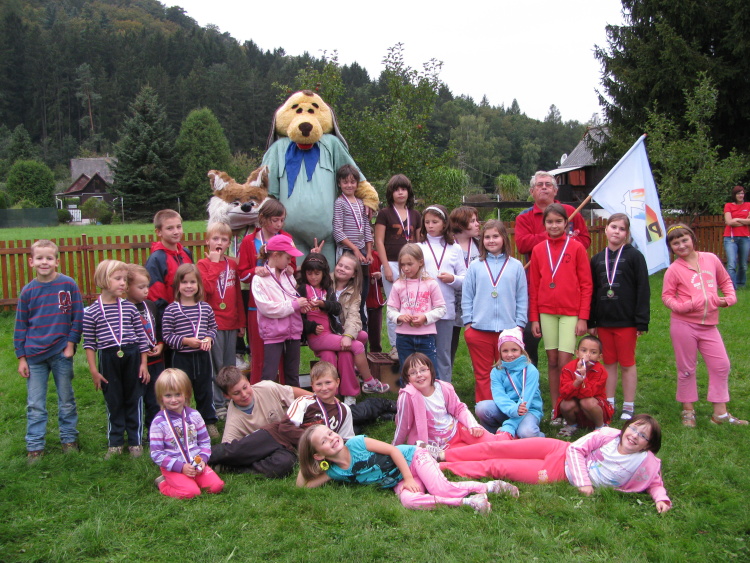 Třicet dětí se proběhlo pod Zelnou Horou za dohledu našeho pionýrského maskota psa a lišky.