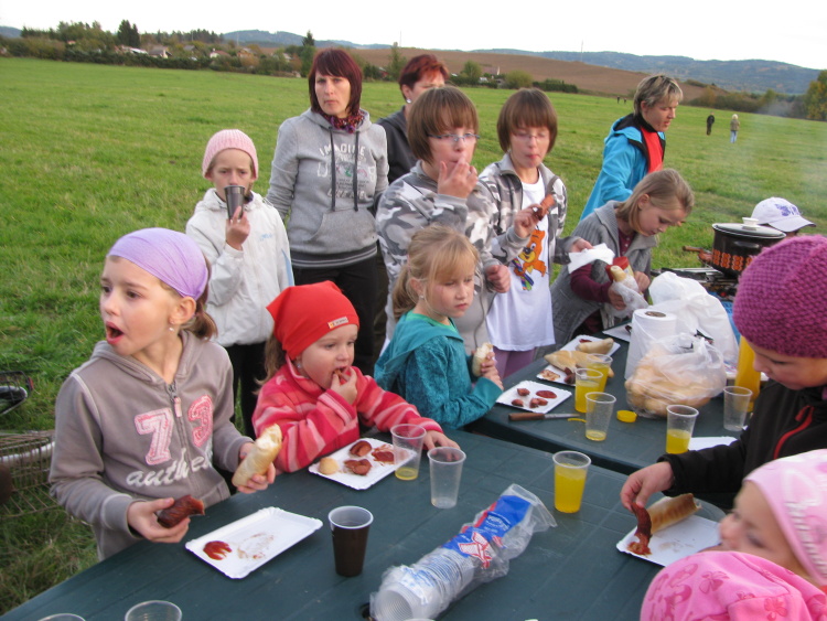 Oddíl Pusík připravil již tradiční drakiádu pro všechny. Na louce u školy se slétlo víc jak dvacet draků, dráčků , rogal a chobotniček. Letos nám i vítr foukal a většina draků vzlétla a pěkně létala.  Závody pak už byl jenom na trpělivostí těch, kdo draka ovládali. Po třiceti minutách už  většina raději šla ochutnat párky a málem na finalisty  nezůstalo. Svůj titul letos obhájila Pavlínka Svejkovská společně s Martinkou Šroubkovou jejich chobotničky vylétly nejvýše a vydržely na obloze celou hodinu.Podívejte se na fotografie z drakiády a prezentaci.