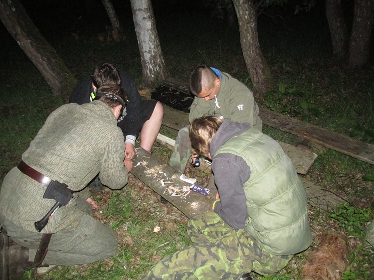 Nejmladší se druhý den řádně potrápili při rozdělávání ohně a ostatní se podíleli na všeobecném pohodlí. Bylo nutné vyrobit nějaký oděv hodný místním podmínkám a tak jsme si nabatikovali trika. Protože zásoba hořčíku rychle docházela, přerušili jsme snažení ohnivců a poté jsme si, každý sám, uvařili chutnou krmi z místního mláděte jakéhosi nelétavého ptáka. Podobalo se kuřeti a dokonce i tak chutnalo… Zatímco se večeře připravovala, vytvořil si každý camrátko na památku našeho osadničení a protože bylo nutné zase trochu poučit nejmladší, vyrábělo se práchno.