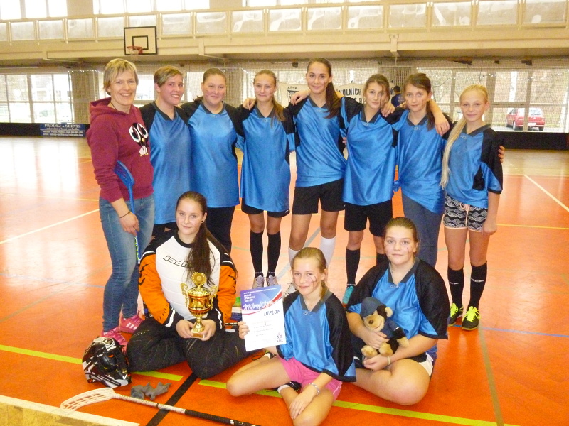 Děvčata (6. - 8.ročník) se již čtvrtým rokem drží na medailových pozicích v krajském kole a letos opět patří mezi nejlepších 12 týmů v ČR. 26.1.2016 budou bojovat o postup na republikové finále. Držte palce, budou to opravdu potřebovat J. V týmu je většina našich florbalistek (Markét Punčochářová, Naty Vladařová, Sára Beránková, Tereza Kočková, Míša Bartičková, Pavlínka Svejkovská, Máří Rottová, Terka Karhanová a Lucka Macháčková). Za vzornou reprezentaci děkuje trenérka Marie Svejkovská.