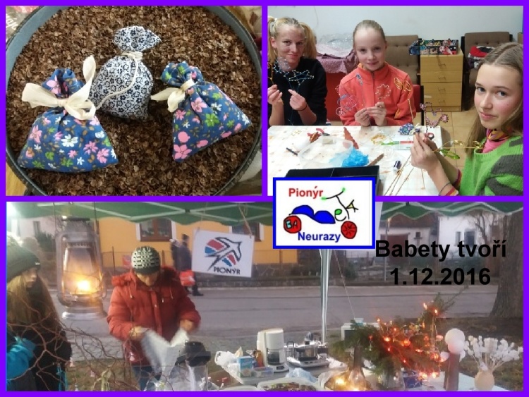 V naší babeťácké klubovně proběhlo 1.12.2016 tradiční tvoření. Práce se samotvrdnoucí hmotou, dráty – zápichy, andílci, šití bylinných pytlíčků, ….. . Naši tvorbu jsme prezentovali na Vánoční výstavě v Neurazech v našem provizorním stanu v sobotu 3.12.2016.*MS