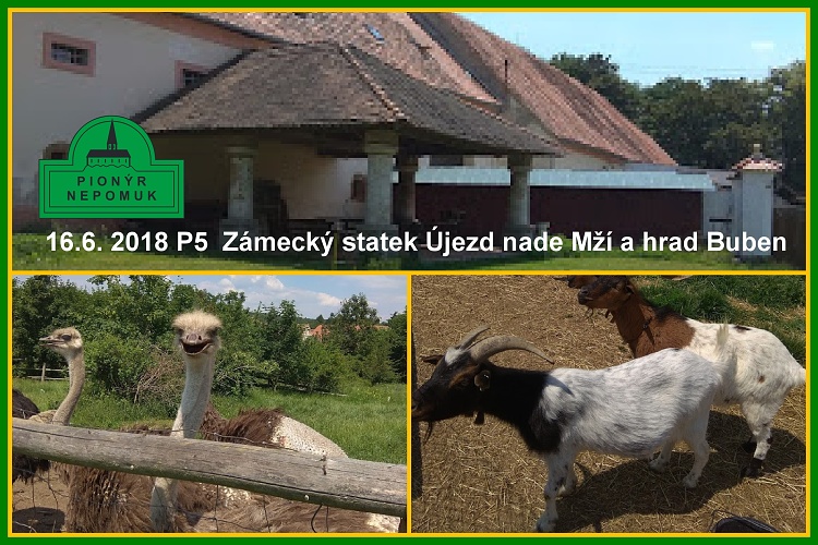 V sobotu 16.6.2018 uspořádala pionýrská skupina P5, při pionýrské skupině Nepomuk, výlet na Buben, Hracholusky a Zámecký statek Újezd nade Mží. Na akci dorazili čtyři účastníci.V sobotu ráno jsme se sešli v 08:45 hodin na hlavním nádraží v Plzni. Odtud jsme vyrazili v 09:10 hodin vlakem do Plešnic. Po výstupu z vlaku jsme se vydali na zříceninu Hradu Buben. Cesta nám rychle ubíhá a před námi jsou dva brody, které musíme zdolat. V prvním moc vody není, tak že si s ním rychle poradíme a skáčeme na druhou stranu. Za chvíli jsme u druhého, ten přecházíme po kamenech. Jsme pod hradem. Zde jsme chvíli oddechli a vyrazili na Hracholuskou přehradu. Zde jsme si odpočinuli a osvěžili. V 11:45 hodin vyrážíme do Újezdu nade Mží. Čekala nás náročná cesta do kopce. Několikrát zastavujeme, potřebujeme se vydýchat. Jsme před malebnou vesničkou. Vítá nás upravená náves. Jdeme si odpočinout a dát svačinu. Blíží se třináctá hodina a tak se jdeme podívat na zvířátka na statek. Po prohlídce vyrážíme zpět do Plešnic. Vlak nám jede v 17:03 hodin a my se vracíme do Plzně. Akce se povedla i počasí nám přálo. Bohužel málo účastníků.*Miroslav Hejlík