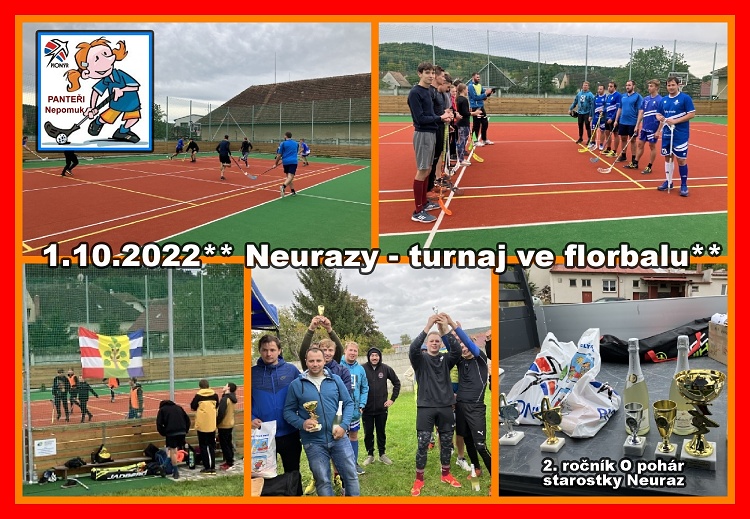 2. ročník turnaje ve florbalu O POHÁR STAROSTKY se uskutečnil v Neurazech 1.10.2022 Krásná ukázka spolupráce obce s Pionýrskou skupinou Nepomuk a obcí Neurazy. Turnaj si získal velkou oblibu mezi místními i družstvy z okolí. Tímto turnajem jsou vytvořené podmínky pro aktivně strávený den dětí i dospělých venku. Sice nás trochu ovlivnilo počasí, ale vše se zvládlo a hlavně bez zranění.Letos opět obhájili putovní pohár Falconi Pionýr Nepomuk i přes velkou snahu hostů ze Sušice a místního týmu. Zahrály si i ti nejmenší a všichni si to moc užili. Doufáme, že turnaj bude i příští rok.**MS