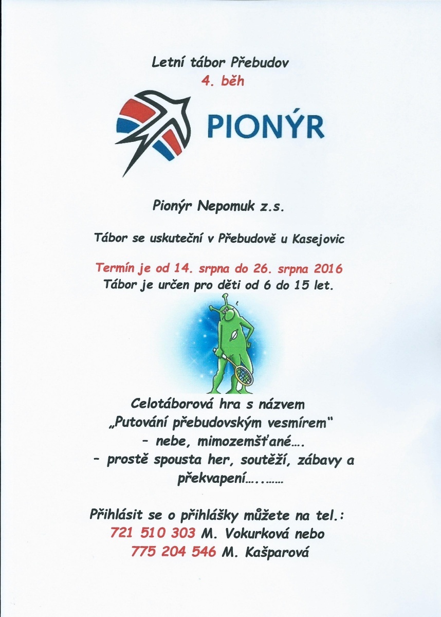 Pionýrská skupina Nepomuk připravila pro léto 2025 šest táborových běhů, tábor rodičů s dětmi a tři příměstské tábory.. O přihlášky na tábory si můžete napsat nebo zavolat na kontakty uvedené v letáčku. img