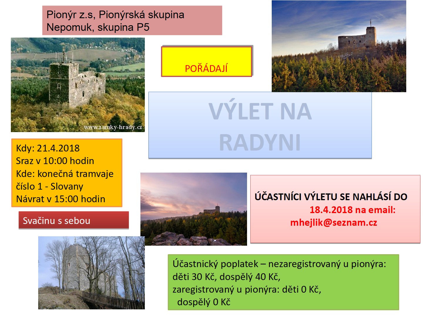 Naše dětská organizace Pionýr připravuje a organizuje volný čas dětem a dospělákům v malém městečku jižně od Plzně.